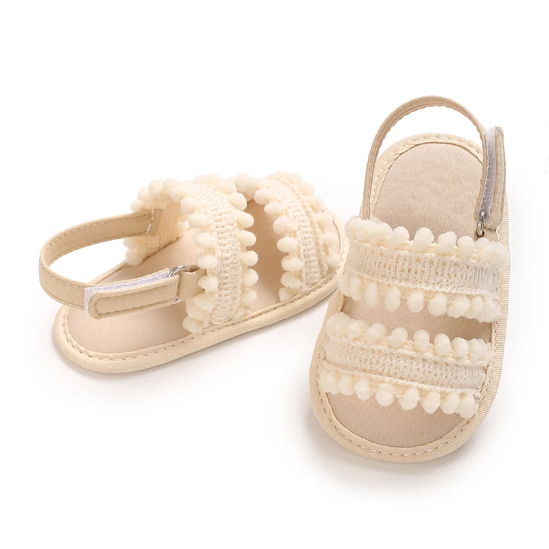3 Colors Baby Girls Sandals Cotton Soft Sole Summer Infant Wedding Dress Flat Shoes Beach Sandal Newborn First Walkers