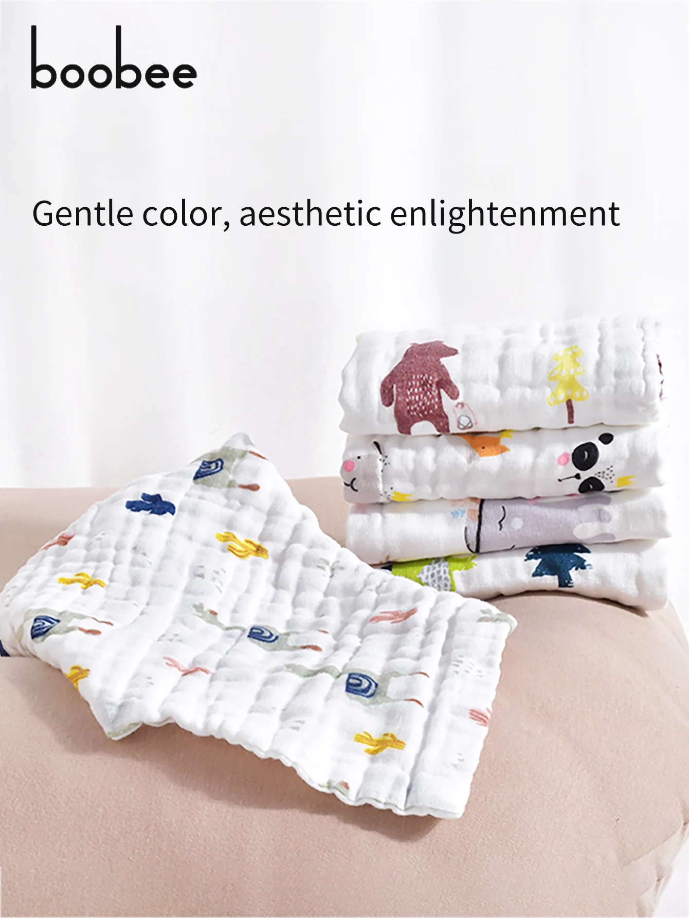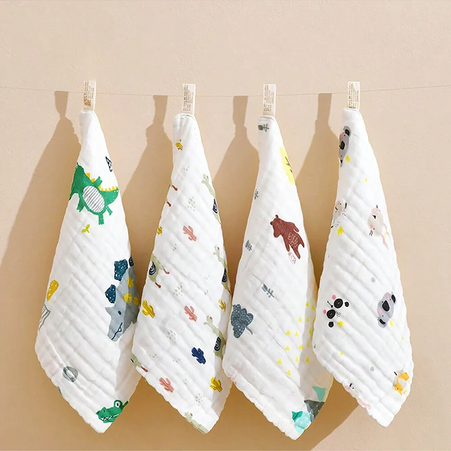4 Pack of 6-Layer Gauze 9.84*9.84in Baby Gauze Towel, Baby Multi-Functional Soft Saliva Towel, Kidsren’s Bathing Newborn Small Square Towel, Burp Towel, Multi-Purpose Towel, Baby Shower Party Gift