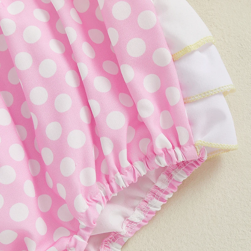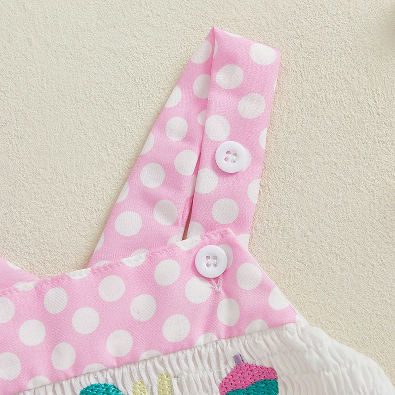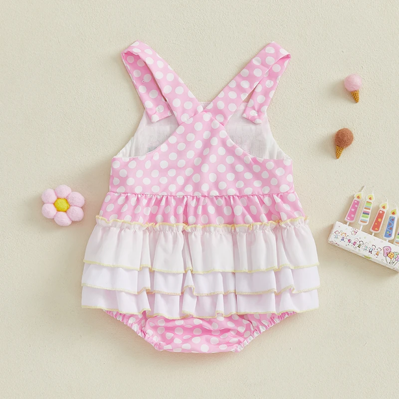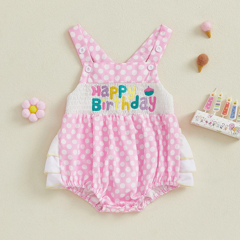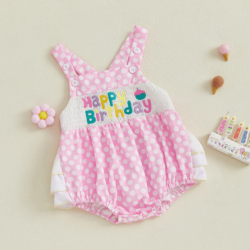 Baby Girl Birthday Day Romper Sleeveless Letter Embroidery Dot Print Cami Jumpsuit
